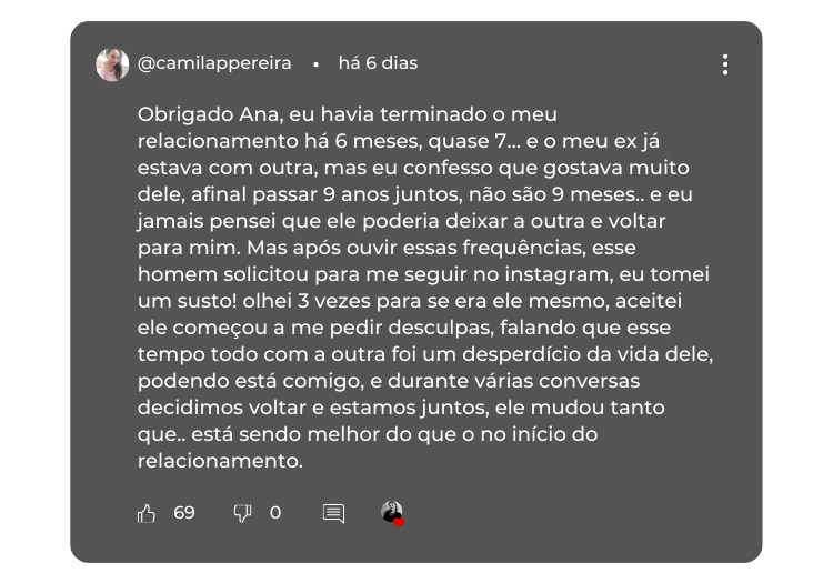Eu já mostrei que isso pode mudаr o seu rеlасіоnаmеntо e também mostrei vários depoimentos de pessoas do qual eu ensinei a frequência e elas tiveram seus rеlасіоnаmеntоѕ transformados